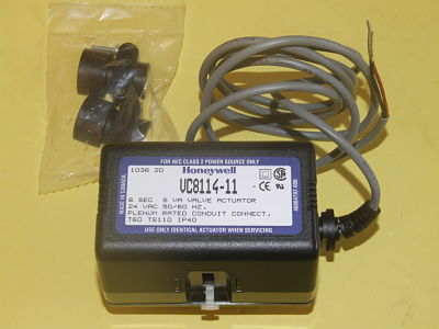Two position; low volt Actuator for VC Series valves. Control central heating and/or cooling systems, fan coil systems, radiators and convectors. Depending on the model selected, it can be controlled by either a low or line voltage SPST or SPDT or floating or modulating controller such as a room thermostat, Aquastat control, flow switch or a 0/2 to 10 Vdc controller. Features: Use with two-way or three-way valves. Minimal actuator power consumption. Double insulated actuator. Quick-connect or one meter cable electrical connections available. Quick and easy replacement of moving parts. Actuator head installation does not require draining the system. On/Off models with six second nominal timing (floating/modulating models available with 120 second timing). Replaces Part Numbers: VC8114ZZ11; VC8114ZZ11/U; VC8111ZZ11; VC8710ZZ03; 2400-450; 2400450.